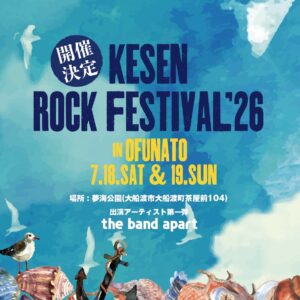 - 2026.1.112026/07/18(土)19(日)KESEN ROCK FESTIVAL’26 IN OFUNATO