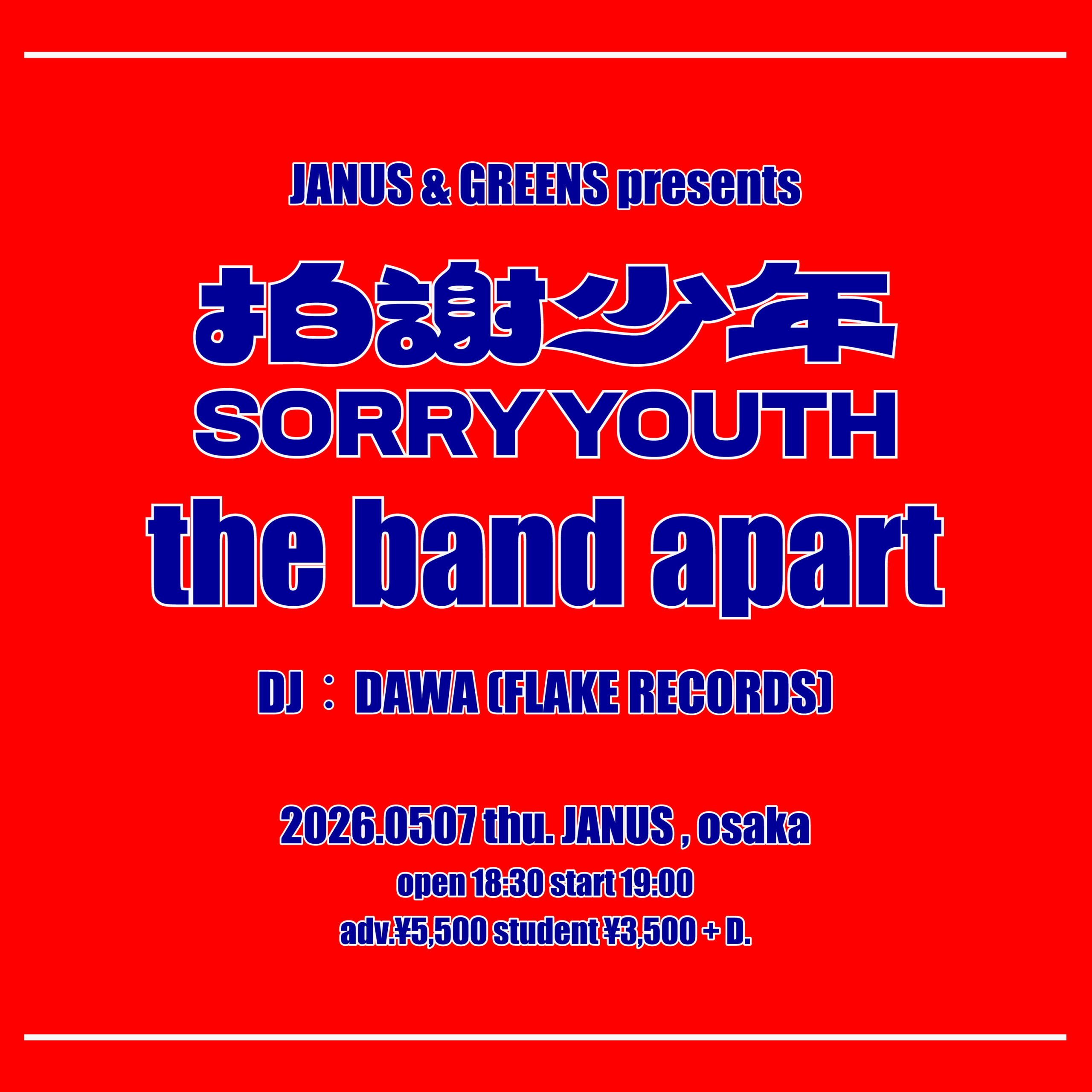 JANUS & GREENS presents 拍謝少年 と the band apart